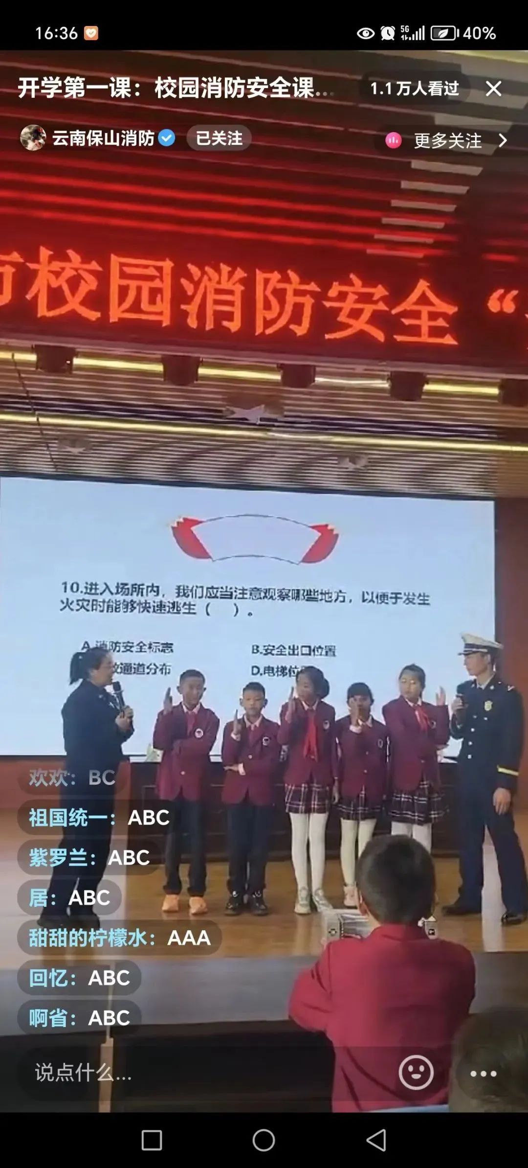 新學期伊始為進一步做好校園消防安全工作近期,全省各級消防救援隊伍持續(xù)開展校園消防安全宣傳活動集中排查校園消防安全隱患為師生創(chuàng)造了一個安全、穩(wěn)定、和諧的育人環(huán)境保山網絡直播開啟第一課保山市消防救援支隊聯(lián)合市教育體育局通過抖音、快手、微信視頻號等新媒體平臺,開展了校園消防安全“開學第一課”網絡直播活動,通過對廣大師生和家長進行“云教學”“云互動”,大力科普消防安全常識,提高自防自救能力。