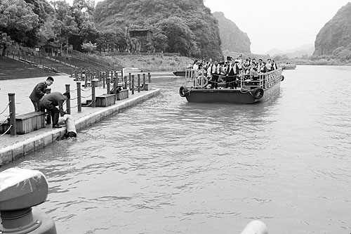一場場突發(fā)的事件并沒有影響整個演出的進(jìn)行,觀眾依序排隊上船準(zhǔn)備看接下來的演出,但“屋漏偏逢連夜雨”一名觀眾由于急著想趕船,失足落入水中。現(xiàn)場工作人員顯然對于這種情況有備而來,迅速將落入水中的觀眾救了上來,并立即帶上了擔(dān)架、藥品箱及保暖內(nèi)衣對落水者進(jìn)行救治。